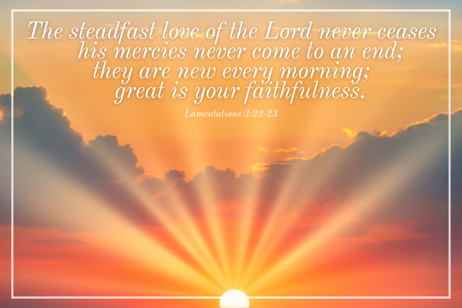 But… but, just as the devastation is the same, the hope of God’s mercy is the same as well. No matter the circumstances, God’s steadfast love and mercies never end. They are new EVERY MORNING. He is faithful, and we can hope in him.